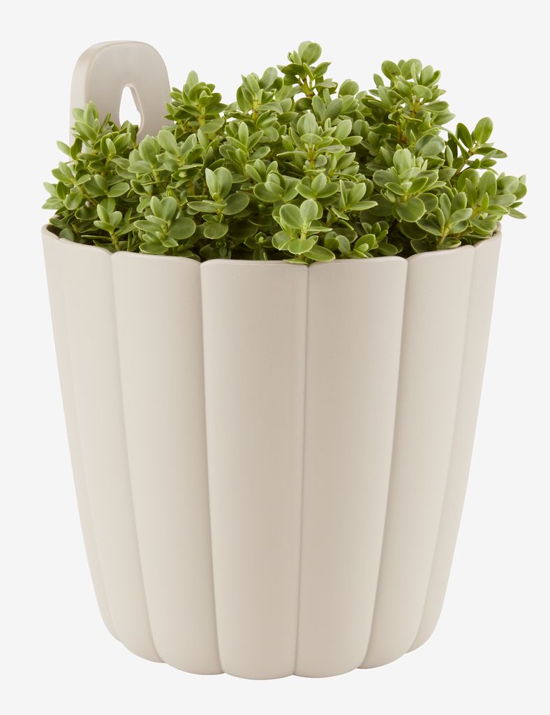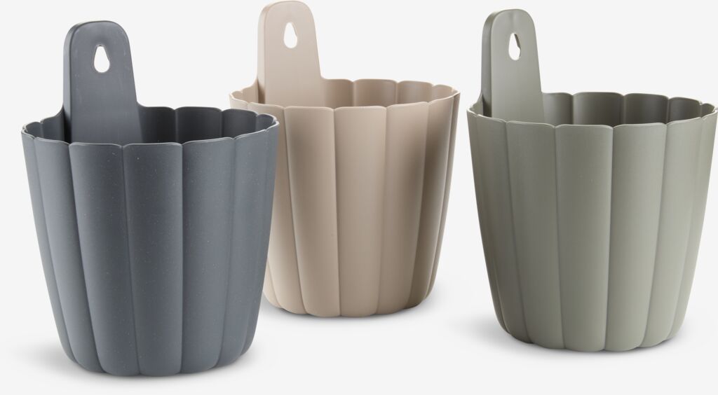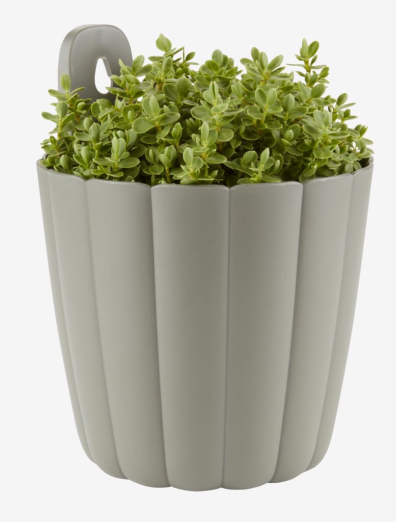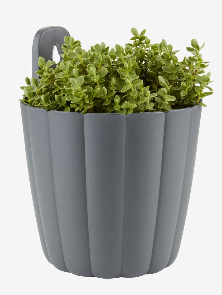 Baštenska saksija od plastike (100% reciklirana), dostupna u raznim bojama. Ova saksija otporna na smrzavanje može se okačiti kao dekoracija na zid i uštediti prostor na podu. Otvor za dreniranje omogućava da višak vode otječe. Ø16xV21 cm