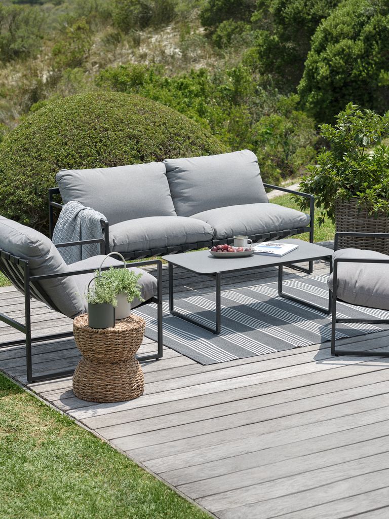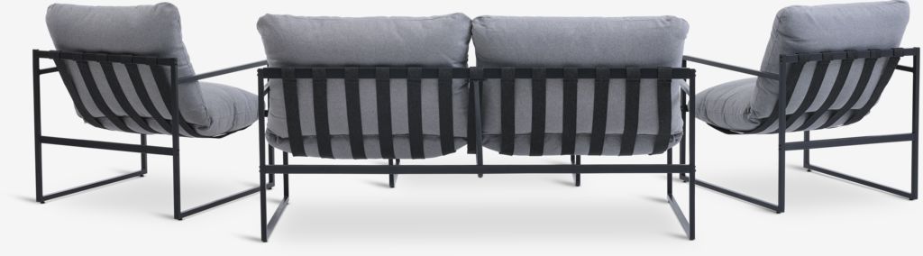 Denna möbel rostar direkt & trall/dynor blir förstörda. Mycket dålig kvalité som utemöbel, denna måste stå inomhus. Tänk dock på att metallen blir fruktansvärt varm..