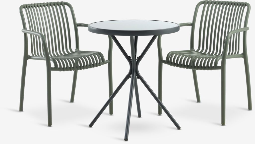 RADSTRUP + NABBENRADSTRUP Ø60 stol crna + 2 NABBEN stolice maslinasto zelena
