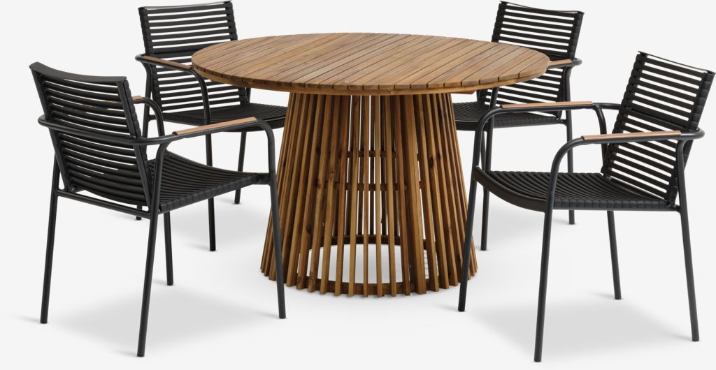 HOLTE Ø120 stol tvrdo drvo + 4 NABE stolica crna