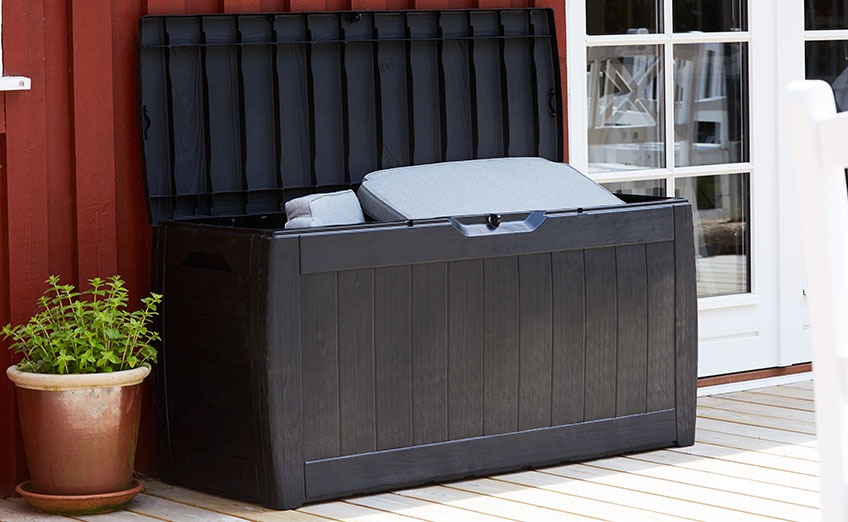 Veliki balkon ili terasa sa baštenskim setovima i lounge namještajem obično zahtijevaju i prostor za odlaganje baštenskih jastuka i deka. Možda imate i dovoljno mjesta za veliki sanduk za odlaganje u koji se mogu smjestiti ne samo baštenski i fenjeri, već i vaš baštenski alat. U ovom slučaju, savjetujemo vam da potražite sanduk sa zapreminom od 700+ litara.