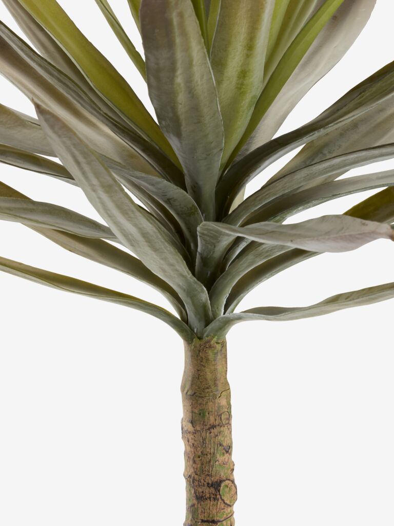 Umjetna biljka s dugačkim, zelenim listovima i visokim stabljikom smještena u crnoj posudi. Veličina biljke čini je pogodnom kao podnu biljku, bilo kod kuće ili u uredu. Ø60xV75 cm