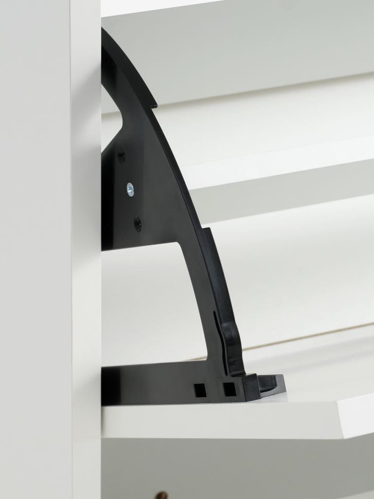 Skoskapet var lett å bygge. Veldig god beskrivelse av hvordan man skulle bygge steg for steg. Men de skruene som skal holde skohylla oppe løsner hele tiden…