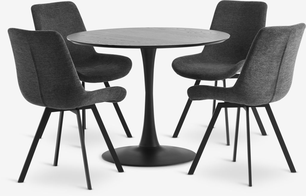 RINGSTED Ø100 stol crna + 4 HYGUM stolice siva
